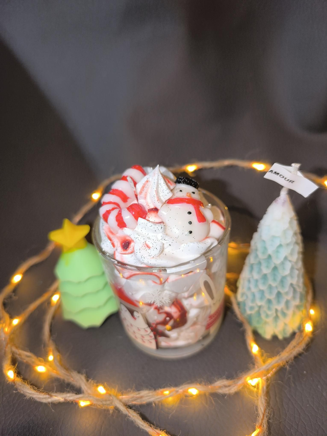 Bougie chantilly de Noël en cire de soja coco parfum nuit douce d'hiver.